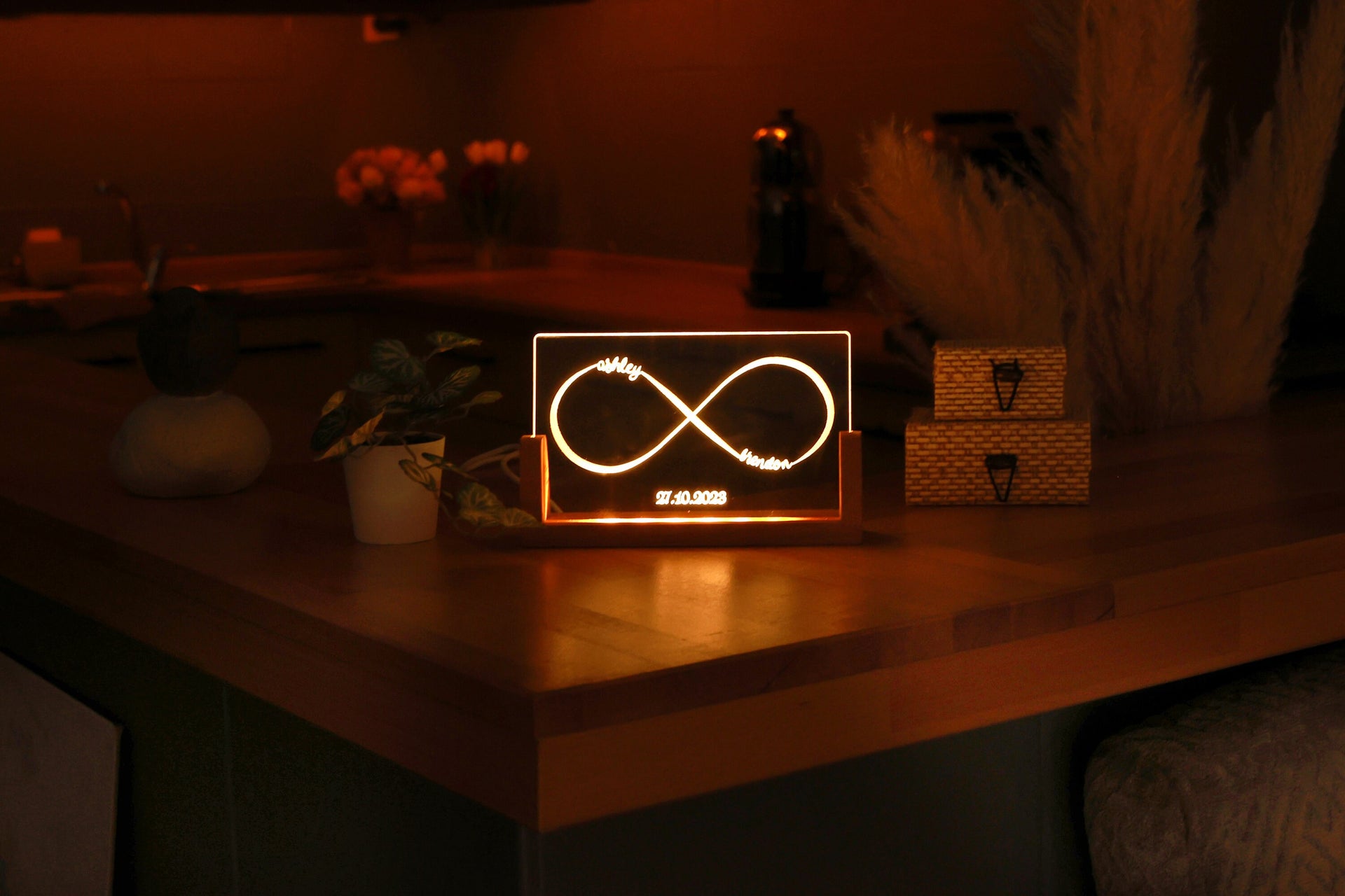 Aşk hikayenizi Kişiye Özel Çift İsimli Tarihli Sonsuzluk Pleksi Lambamızla aydınlatın. Bu çarpıcı lamba, kalıcı aşkınızın zamansız bir temsili olan zarif bir sonsuzluk sembolüyle iç içe geçmiş adlarınızı içeren sanat ve duyguyu harmanlıyor. Özel tarihinizin eklenmesi, değerli bir dokunuş katarak onu düğünler, yıldönümleri veya herhangi bir romantik durum için mükemmel bir hediye haline getirir. Hassasiyet ve özenle üretilen bu özel yapım lamba, evinizde sıcak, kişiselleştirilmiş bir ışıltı yaratarak size her gün benzersiz bağınızı hatırlatacaktır.