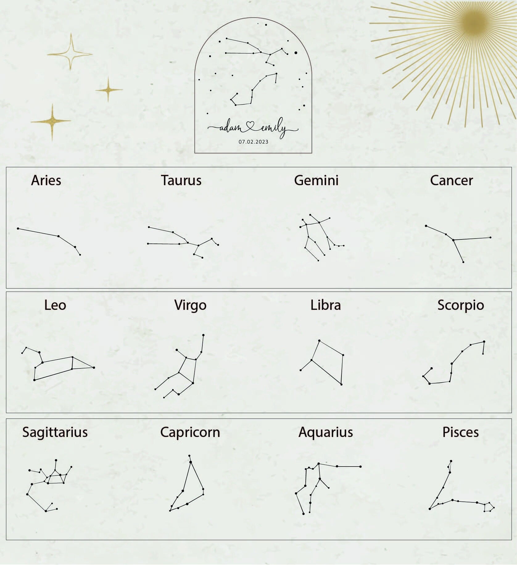 Celestial Zodiac Constellation Gece Lambası, Kişiye Özel Yıldız Burcu Pleksi Lamba